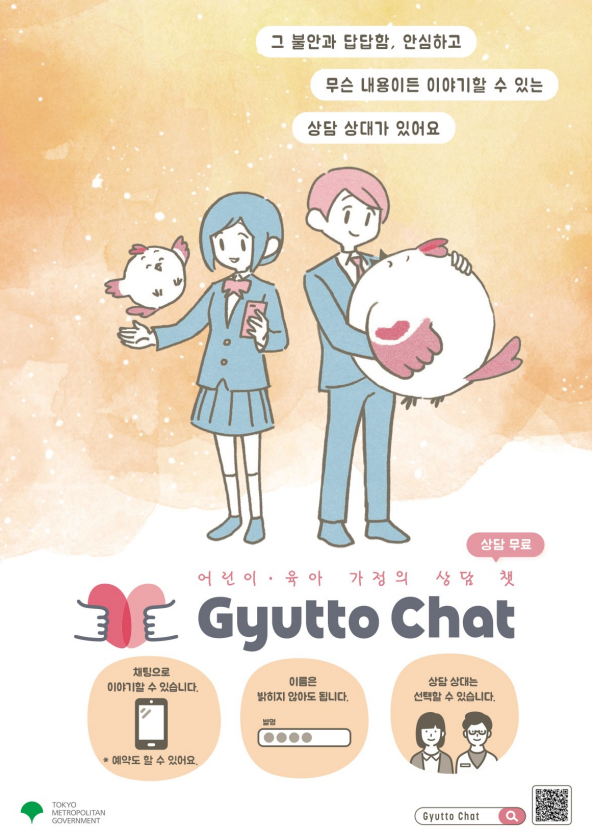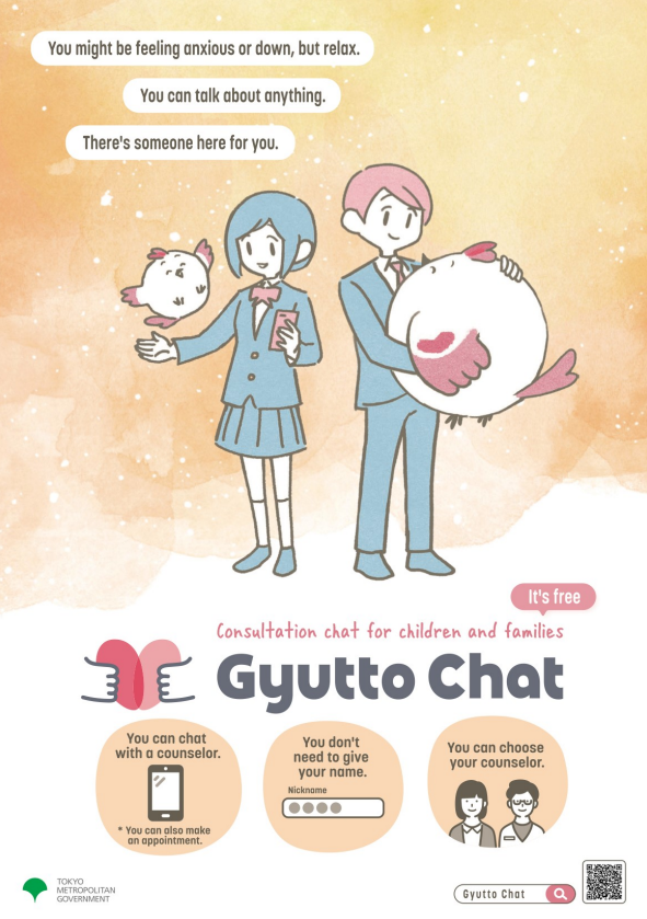 ギュッとチャットの東京都公式Instagramアカウント(@gyutto_chat)(外部サイトへリンク)を開設しました。ギュッぴぃの活動やギュッとチャットからのお知らせを投稿しているので、ぜひフォローしてください。