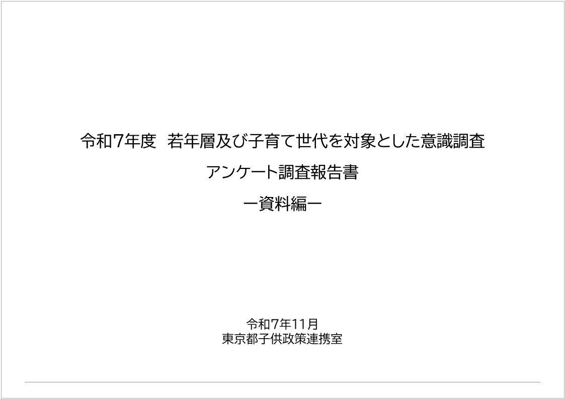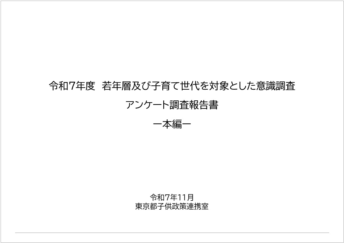 東京都では、都民の生活実態や結婚・出産・子育てに関する意識を把握するため、若年層や子育て世代を対象とする意識調査を実施しています。