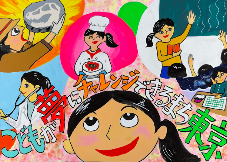 東京は子供たちがなりたいものに対して一生懸命努力できる場所だと思います。みんなの夢が叶う姿を描きました。私は医師になりたいです。
